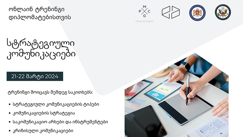 On 21-22 March within the frames of the project “Diplomatic Training in Economic and Commercial Statecraft” an online training on Strategic Communications was held, led by Nikoloz Tevdorashvili, invited trainer by the Policy and Management Consulting Group (PMCG).